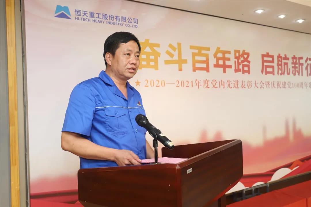 公司總經理、黨委副書記王國俊代表公司黨委作了總結講話。他系統回顧了100年來中國共產黨走過的光輝歷程,一代又一代的共產黨人滿懷堅定忠誠的信仰,傳承艱苦奮斗的作風,恪守執政為民的宗旨,發揚開拓創新的精神,帶領中國從列強欺凌、軍閥混戰、民不聊生的苦難深淵走上了國家富強、民族振興、人民幸福的中國特色社會主義康莊大道。對于我們恒天重工人來說更是如此,我們不忘建廠初心,牢記傳承使命,72年來,恒天重工從無到有,規模從小到大,產品從國內走向國際,遠銷世界70多個國家和地區,成為我國紡織機械行業的排頭兵、頂梁柱,是一代又一代紡機人幾十年來堅定理想信念,始終不忘初心使命,聽黨話、跟黨走,立足本職工作崗位,廣大黨員充分發揮黨員的先鋒模范作用,從而創造了企業的輝煌歷史。在企業72年的發展歷程中,涌現出賀志芳、李紹甫、李會東等一大批優秀共產黨員、先進模范人物,他們愛崗敬業、勇于奉獻、吃苦耐勞、敢打硬仗、勇于勝利,將“鄭機人不甘人后,求發展奮斗不息”和“艱苦奮斗、敢為人先、科技創新、永爭第一”的企業精神賡續傳承,不斷升華,使其始終煥發著旺盛的生命力。