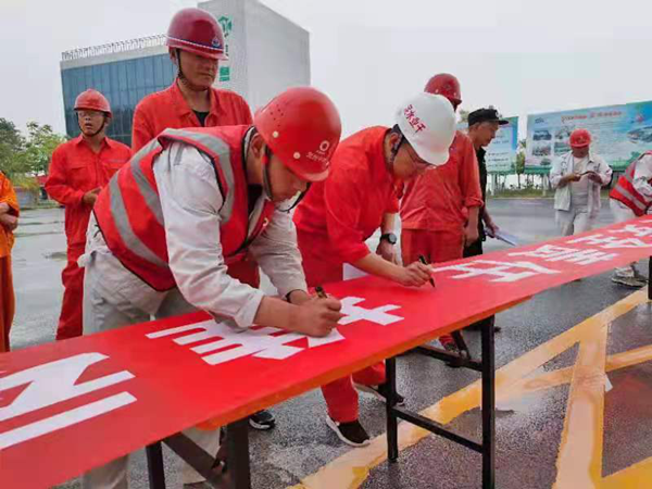為落實(shí)安全責(zé)任、推動安全生產(chǎn),嚴(yán)格執(zhí)行全國安全生產(chǎn)專項(xiàng)整治三年行動集中攻堅(jiān)要求,6月1日,馬村分公司于千業(yè)礦山一期卸料平臺舉行2021年“安全生產(chǎn)月”活動啟動儀式暨宣誓、簽字儀式。  2021年6月是我國的第20個“安全生產(chǎn)月”,今年安全月活動的主題是: 落實(shí)安全責(zé)任 推動安全發(fā)展。我們要深入學(xué)習(xí)習(xí)近平總書記關(guān)于安全生產(chǎn)重要論述,全面貫徹落實(shí)黨中央、國務(wù)院關(guān)于安全生產(chǎn)重大決策部署和集團(tuán)、中材礦山關(guān)于安全生產(chǎn)工作要求,以“防風(fēng)險、除隱患、遏事故”為目標(biāo),扎實(shí)推進(jìn)安全生產(chǎn)專項(xiàng)整治三年行動集中攻堅(jiān)。利用“安全生產(chǎn)月”的活動這一契機(jī),通過開展安全生產(chǎn)事故警示教育、安全生產(chǎn)應(yīng)急救援演練、安全教育培訓(xùn)、張貼安全宣傳標(biāo)語等活動,增強(qiáng)全員安全意識,提升員工安全素質(zhì),確保公司安全生產(chǎn)形勢持續(xù)穩(wěn)定。 此次活動進(jìn)一步提高各崗位人員對安全工作重要性、艱巨性和長期性的認(rèn)識,通過安全月的學(xué)習(xí),認(rèn)真做好當(dāng)前和今后的安全生產(chǎn)工作。充分發(fā)揮現(xiàn)場管理人員的監(jiān)管作用,強(qiáng)化各項(xiàng)安全措施的貫徹落實(shí),及時消除隱患,全面提高安全生產(chǎn)條件,保證分公司安全生產(chǎn)形勢持續(xù)穩(wěn)定。