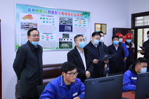 3月17日下午,中國建材股份有限公司黨委委員、副總裁、中材礦山建設有限公司董事長張金棟一行蒞臨滁州中聯黃槽坊礦山視察指導工作,滁州中聯水泥有限公司黨委書記、總經理劉曉俊率黨委成員、兗州中材建設有限公司副總經理顏景祥及相關領導全程陪同。  張總一行領導深入礦山現場,聽取了關于綠色礦山建設的相關匯報,實地檢查了礦山開采作業、車輛運輸、安全設備運行等相關情況。劉總向張總匯報了礦山開采近期規劃,并展望礦山未來發展。  隨后,張總一行參觀了5G智能控制室,聽取了關于5G智能數字化綠色礦山建設情況的相關匯報。  本次張總一行領導蒞臨黃槽坊礦山視察指導,既肯定了現階段礦山建設取得的成績,又指明了礦山下階段的發展方向。