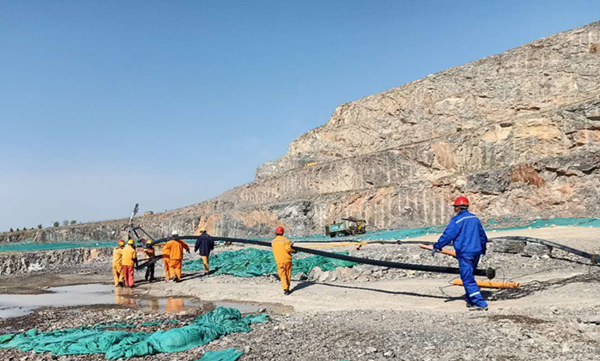 在嚴(yán)峻的環(huán)保形勢(shì)下,為了更好的控制灰塵對(duì)大氣環(huán)境的污染,棗莊申豐水泥礦山在各個(gè)采礦平臺(tái)鋪設(shè)了噴射系統(tǒng),對(duì)正在進(jìn)行挖裝的作業(yè)區(qū)都配置了降塵水炮。因每組水炮都有一定的噴射范圍,現(xiàn)場(chǎng)管理人員根據(jù)現(xiàn)場(chǎng)礦石開采及裝運(yùn)情況,經(jīng)常需要對(duì)噴射裝置及管路進(jìn)行挪移。