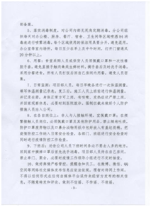 配合當地政府體溫監測 落實措施,扎實開展防控工作。分公司設立疫情防控點,配備防護口罩、手套、防護鏡、體溫計及測溫槍、酒精、84消毒液、噴霧器等防護物資。嚴格控制返程人員,對居住或經過疫情防控重點區域人員,要求暫不返回項目部,居家隔離自我觀察;要求返回項目部人員,返程路上嚴格落實個人防控措施,制定記錄表,對返回人員嚴格檢查、登記;返回項目部后,在項目部內自行隔離14天,每天早晚測量體溫并做好記錄。    返程人員登記 每日體溫監測 集中開展項目部衛生消毒工作。分公司通過多種渠道,購進酒精、84消毒液等藥品,每天上午下午各進行一次集中消毒工作,辦公室、會議室、廚房、餐廳、宿舍、衛生間、走廊、院內邊邊角角,全面消殺。  項目部消毒 消毒記錄