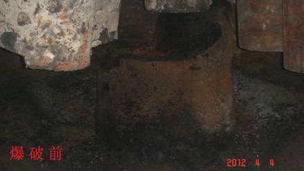 兗州中材建設有限公司云維項目部 實施石墨電極分解爆破 4月4日,應云維乙炔化工有限公司(業主)要求,我項目部對其廠區1#電石爐內石墨電極成功實施分解爆破。 本次爆破點位于業主電石車間二層電石爐內,技術人員和安全員經現場勘查發現:石墨電極為直徑1.2m、高約1.5m的圓柱狀石墨體,從中心呈輻射狀均勻分布12塊約1cm厚鋼板。三個電極呈“品”字狀分布在一個直徑約7~8米的幾乎密閉的鋼制反應爐內(有洞口)。爆前充分勘察了爆區周圍的實際情況,結合從網絡上搜集的對石墨電極的性能分析和以往的爆破經驗,選用合適的爆破器材,擬定了幾種爆破方案。充分分析爆破方案的可行性后,選擇其中可行性較高的兩種方案進行了試爆,結合兩次試爆效果,經調整爆破參數后,最終成功拆除。 本次爆破對僅隔約10米遠、正在生產的2#爐和庫房未產生任何影響。 這次爆破工作雖小,但我們本著謹慎、科學的態度對待。從爆破參數的選擇到安全警戒都認真小心,取得了預想的效果。 通過這次爆破,積累了對巖石以外材料的爆破經驗,也增加了我項目部尤其是年輕人工作技能。也到了業主的認可。 孟永旺