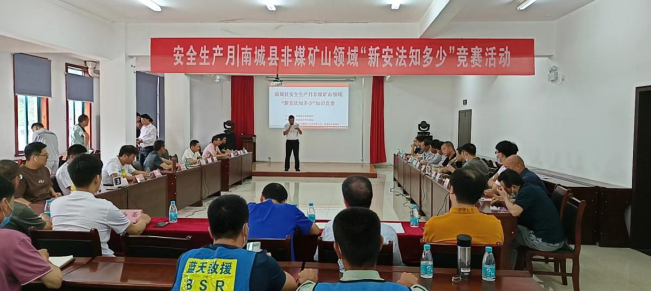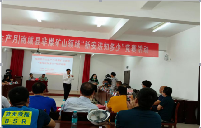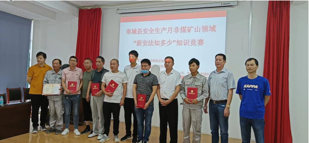 今年6月是全國第21個(gè)安全生產(chǎn)月,安全生產(chǎn)月的主題是“遵守安全生產(chǎn)法,當(dāng)好第一責(zé)任人”,今天也是全國安全宣傳日,南城縣安全生產(chǎn)委員會(huì)礦山安全專業(yè)委員會(huì)決定在江西南城南方水泥有限公司舉辦南城縣非煤礦山“新安法,知多少”知識(shí)競賽活動(dòng)。 參賽隊(duì)伍:(1號隊(duì))南城縣新泰石材廠、(2號隊(duì))南城縣南景東風(fēng)礦業(yè)有限公司、(3號隊(duì))南城縣富耀瓷土有限公司、(4號隊(duì))南城縣青玉礦業(yè)有限公司、(5號隊(duì))江西煜晟礦業(yè)有限公司、(6號隊(duì))兗州中材建設(shè)有限公司南城分公司、(7號隊(duì))江西昌和礦業(yè)有限公司。