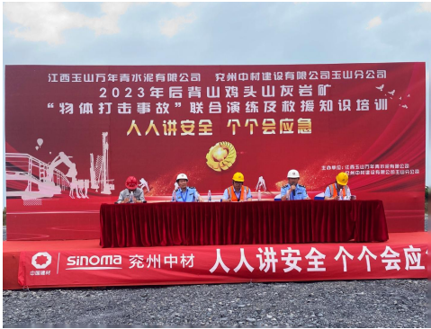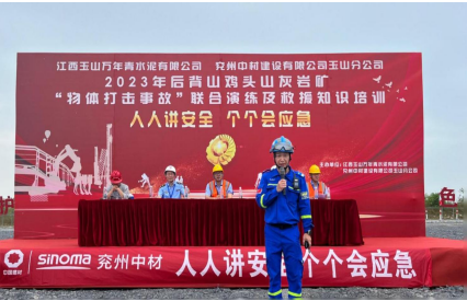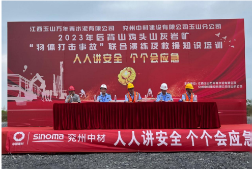 為深入宣貫黨的二十大精神和習近平總書記關于安全生產重要論述,進一步樹牢“以人為本、安全發(fā)展”的安全生產管理理念,貫徹“安全第一、預防為主、綜合治理”的安全生產方針,強化非煤礦山事故應急救援管理工作和應急救援隊伍建設,切實提高分公司應對礦山突發(fā)事故的聯(lián)合應急救援綜合能力,6月17日,兗州中材玉山分公司聯(lián)合江西玉山萬年青水泥有限公司、玉山縣藍天救援隊、玉山縣人民醫(yī)院等舉辦2023年“物體打擊事故”聯(lián)合演練及救援知識培訓活動。玉山縣應急管理局局長吳高峰、玉山萬年青水泥有限公司總經理李躍華等出席本次活動并致辭。