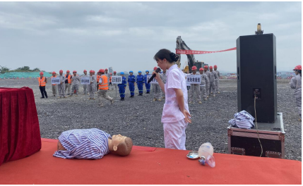 演練結束后,大家匯聚在現(xiàn)場安全平臺,由玉山縣藍天救援隊隊長許慶華為大家講解現(xiàn)場緊急救援要點、玉山縣人民醫(yī)院護士長為我們講解并現(xiàn)場演示心肺復蘇及外傷現(xiàn)場應急處置方法。通過本次聯(lián)合演練及專業(yè)知識講解學習,我們學習到在現(xiàn)場救援時,首先要進行環(huán)境評估,觀察場地是否存在二次危險,觀察好逃生路線,不要慌張,不要輕易搬動患者及正確對骨折患者如何轉移的要點。