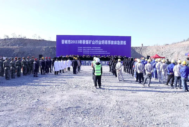 | 為進一步提升非煤礦山企業(yè)安全意識和應對突發(fā)事故的處置能力,晉城市 2023 年非煤礦山行業(yè)坍塌事故應急演練在晉城山水合聚水泥有限公司司家掌石灰?guī)r礦(澤州分公司承建礦山)舉行。晉城市應急管理局、縣應急管理局、縣委宣傳部、縣衛(wèi)健局、縣公安局、縣氣象局、縣消防救援大隊、縣自然資源局、晉城市救援救護隊、晉城市能源技術中心等 12 家單位120余人參與演練。市應急管理局三級調研員柳青、市應急管理局救援協(xié)調科邰建民、各縣區(qū)應急管理局負責人、分管負責人、非煤礦山行業(yè)相關科室負責人及全市所有非煤礦山企業(yè)主要負責人等 130 多人現場觀摩了演練。
