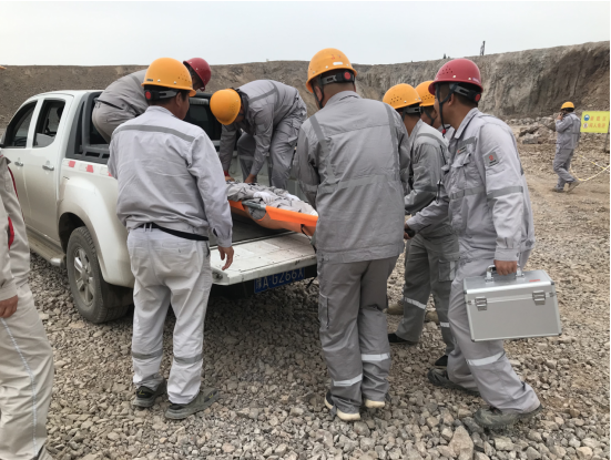 上午10時整,演練正式拉開序幕。假設情況是該露天礦山某區(qū)域發(fā)生了邊坡坍塌,造成一名作業(yè)人員腿部受傷被困。接到報告后,項目副經理楊宇立即啟動應急預案,迅速組織了由醫(yī)療救護組、應急搶險組、警戒保衛(wèi)組、物資保障組等部門人員組成的應急救援隊伍,攜帶救援裝備,迅速趕赴事故現場。同時,通訊保障組也迅速建立起臨時通訊網絡,確保現場信息暢通無阻。