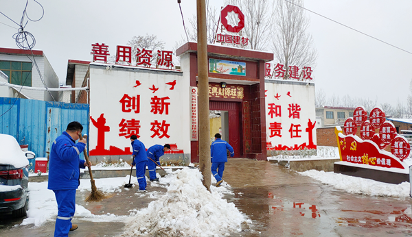 2021.2.25白坪分公司迎來了開春后的第一場雪,俗話說:瑞雪兆豐年,在大家欣喜銀裝素裹的同時,厚厚的積雪也影響了出行,在分公司領導帶領下,黨員同志模范帶頭,大家分工明確、不畏寒冷,拿上鐵锨、掃帚等掃雪工具迅速投入到鏟雪除冰行動中,經過近一小時的鏟雪工作,分公司出入口及附近村民出行干道積雪清理干凈,消除了道路出行安全隱患。