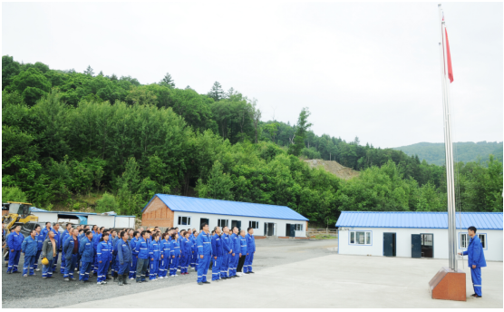 2022年7月1日, 兗州中材和龍分公司在Ⅳ號(hào)礦組辦公生活區(qū)舉行“升國(guó)旗、唱國(guó)歌”儀式,風(fēng)展紅旗如畫,砥礪初心如磐。