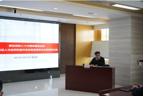 郭正勇從三方面進行了深入闡述和精彩宣講。一是深刻理解二十大報告中關于推動綠色發展,促進人與自然和諧共生的深刻內涵;二是全面把握人與自然和諧共生新任務,聚力踐行央企綠色發展使命擔當;三是聚焦近期工作,強化擔當落實。