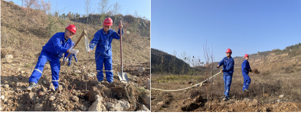 春風(fēng)催新綠,植樹正當(dāng)時。上午9時,植樹現(xiàn)場全員帶上工具直奔目的地,大家分工協(xié)作,揮鍬挖坑、扶苗栽苗、澆水培土,個個干勁十足,各個環(huán)節(jié)銜接有序,配合默契,勞動現(xiàn)場處處是忙碌的身影,一派春意盎然、生機(jī)勃勃的景象,真正是勁往一處使、汗往一處流,充分發(fā)揚了團(tuán)結(jié)、互助、友愛的精神。